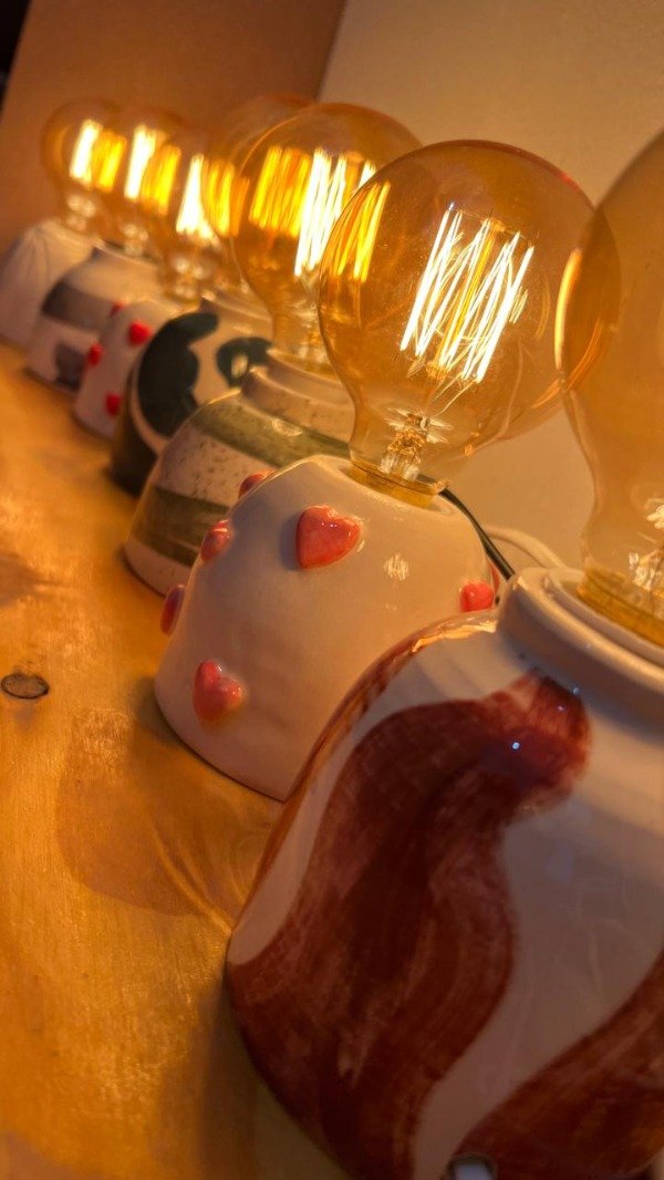 Veladores realizados en torno alfarero, totalmente artesanales. Con instalación y lámpara incluidos